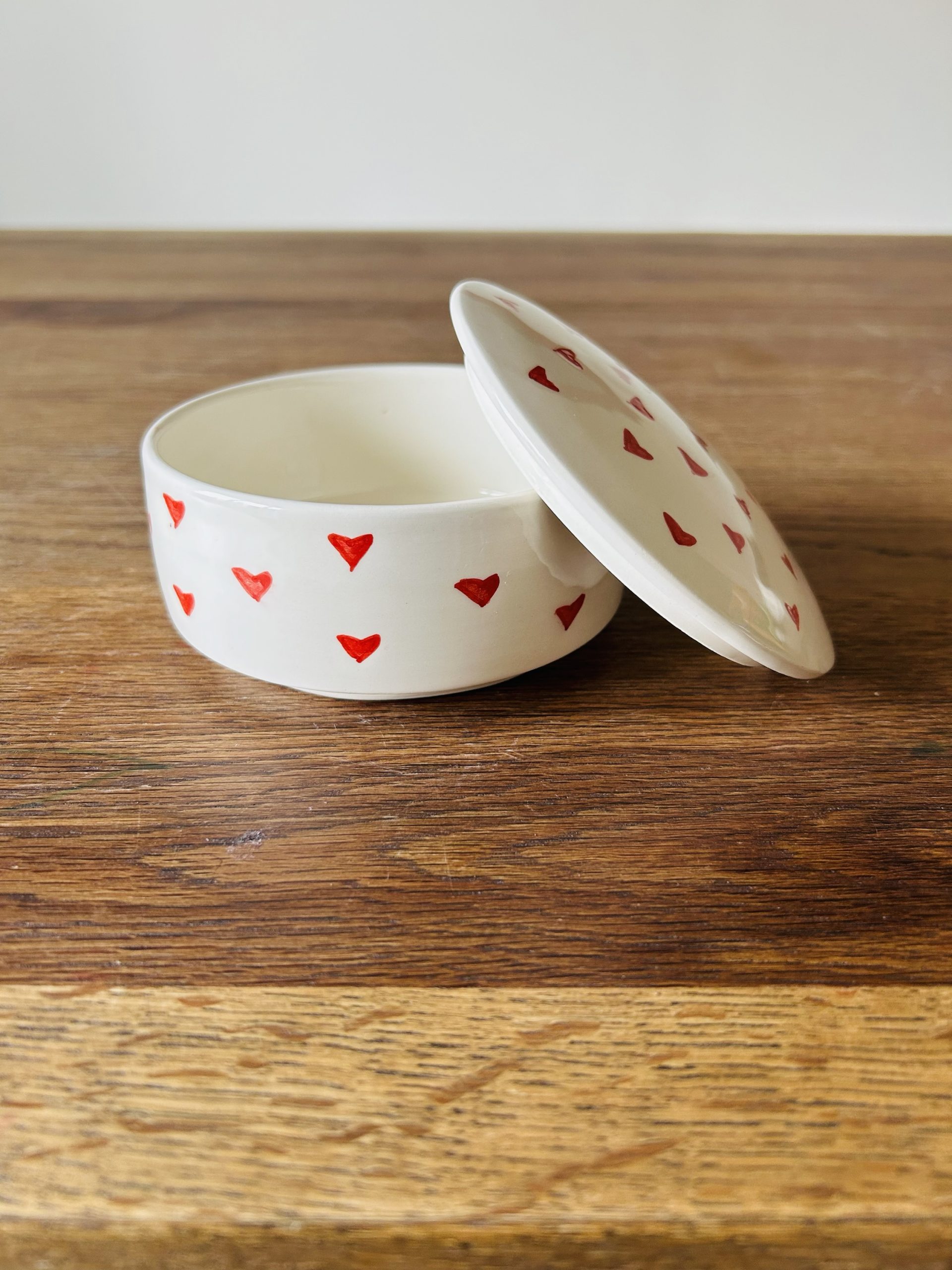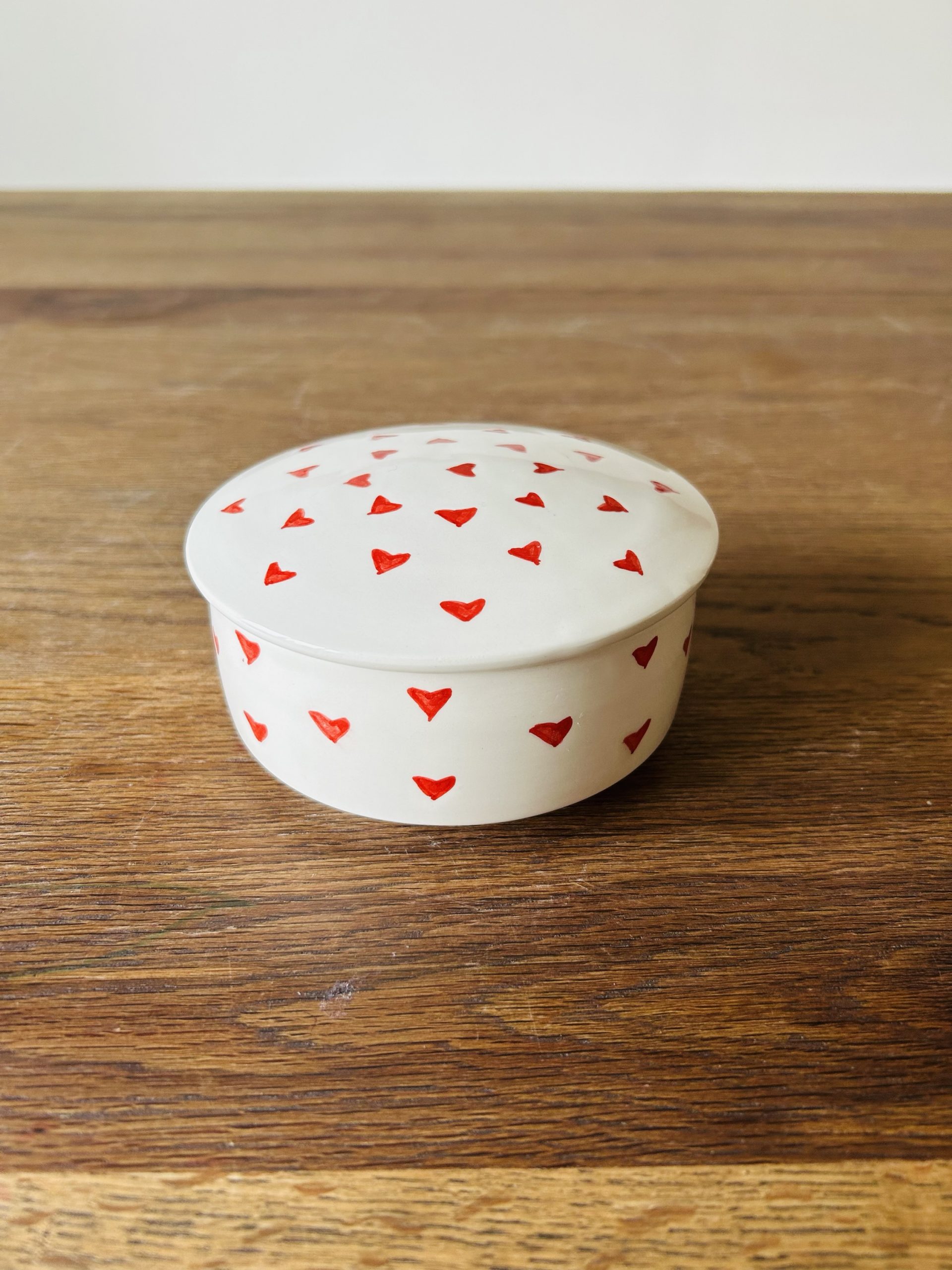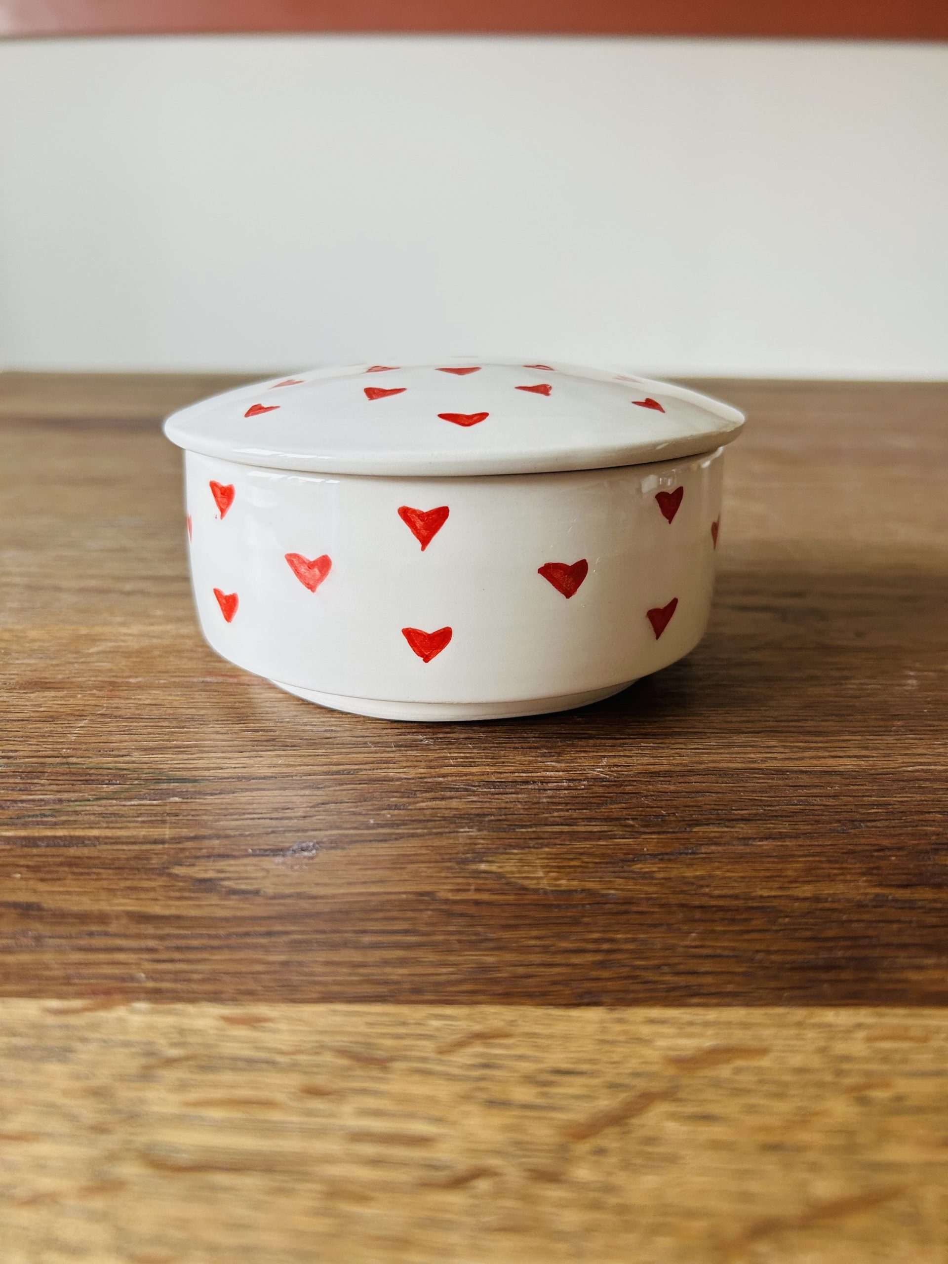 Découvrez notre ravissante boîte marocaine fait main blanche et cœur rouge, une touche d’élégance artisanale pour votre table !