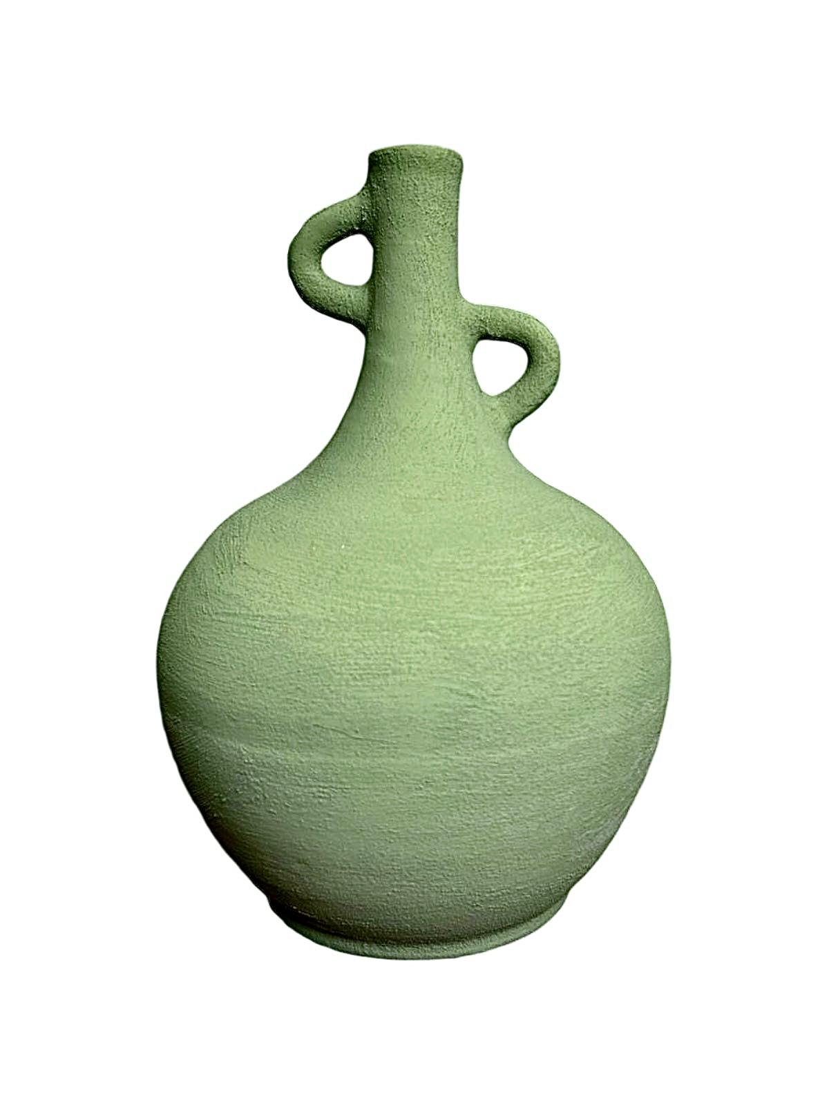 Laissez-vous séduire par notre jarre vase bouteille 2 doigts vert sauge kaki, une création artisanale marocaine unique !