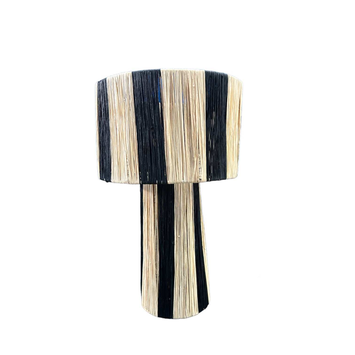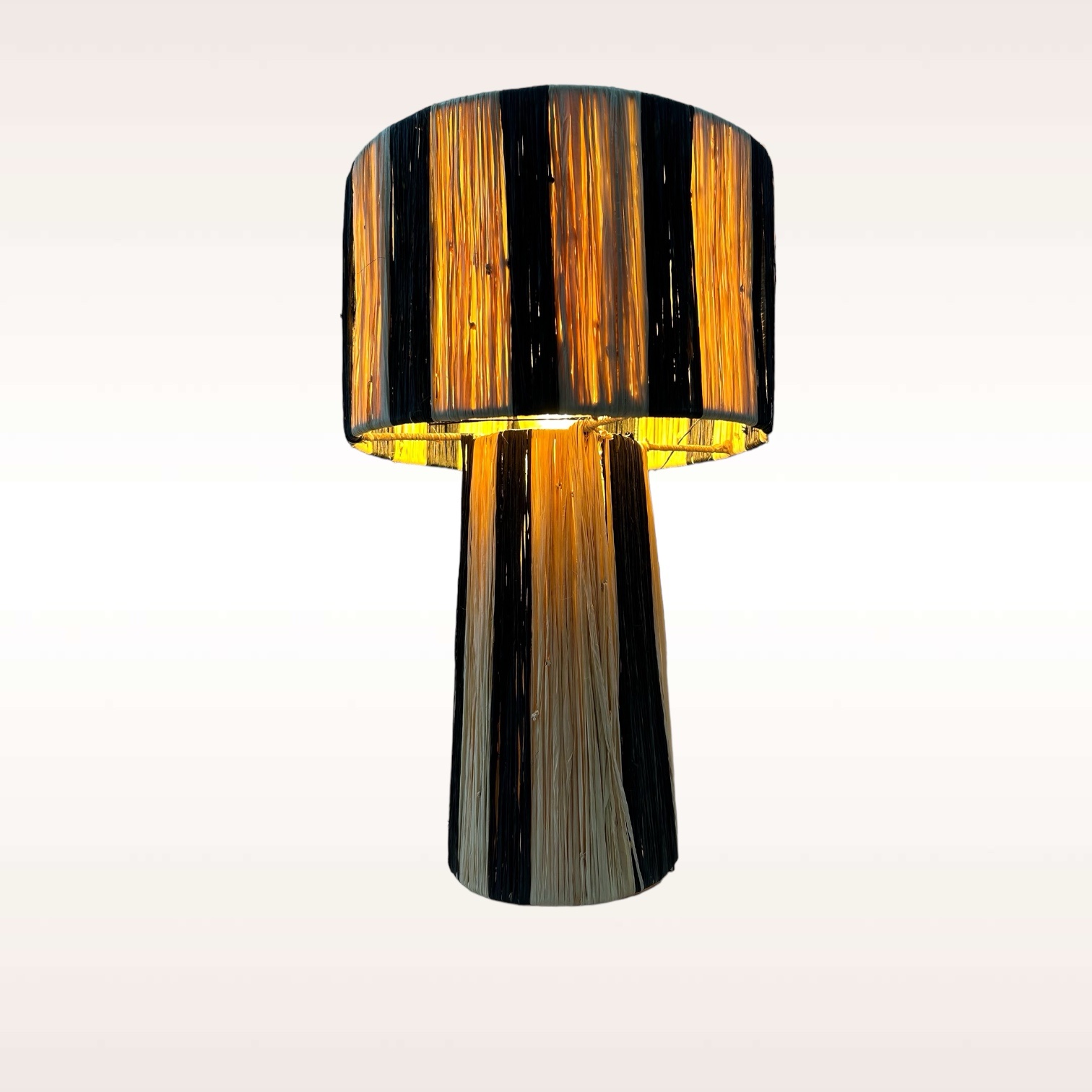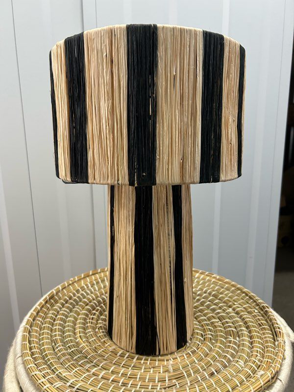 Laissez-vous tenter par cette superbe lampe à poser !  C’est une lampe artisanale au design épuré et organique réalisée à partir de raphia tissé à la main sur sa structure en fer forgé. Allumée, elle diffuse une lumière chaude et tamisée. Idéale comme lampe de chevet et d’appoint dans un séjour. On apprécie le contraste entre son design minimaliste et le twist bohème du raphia.