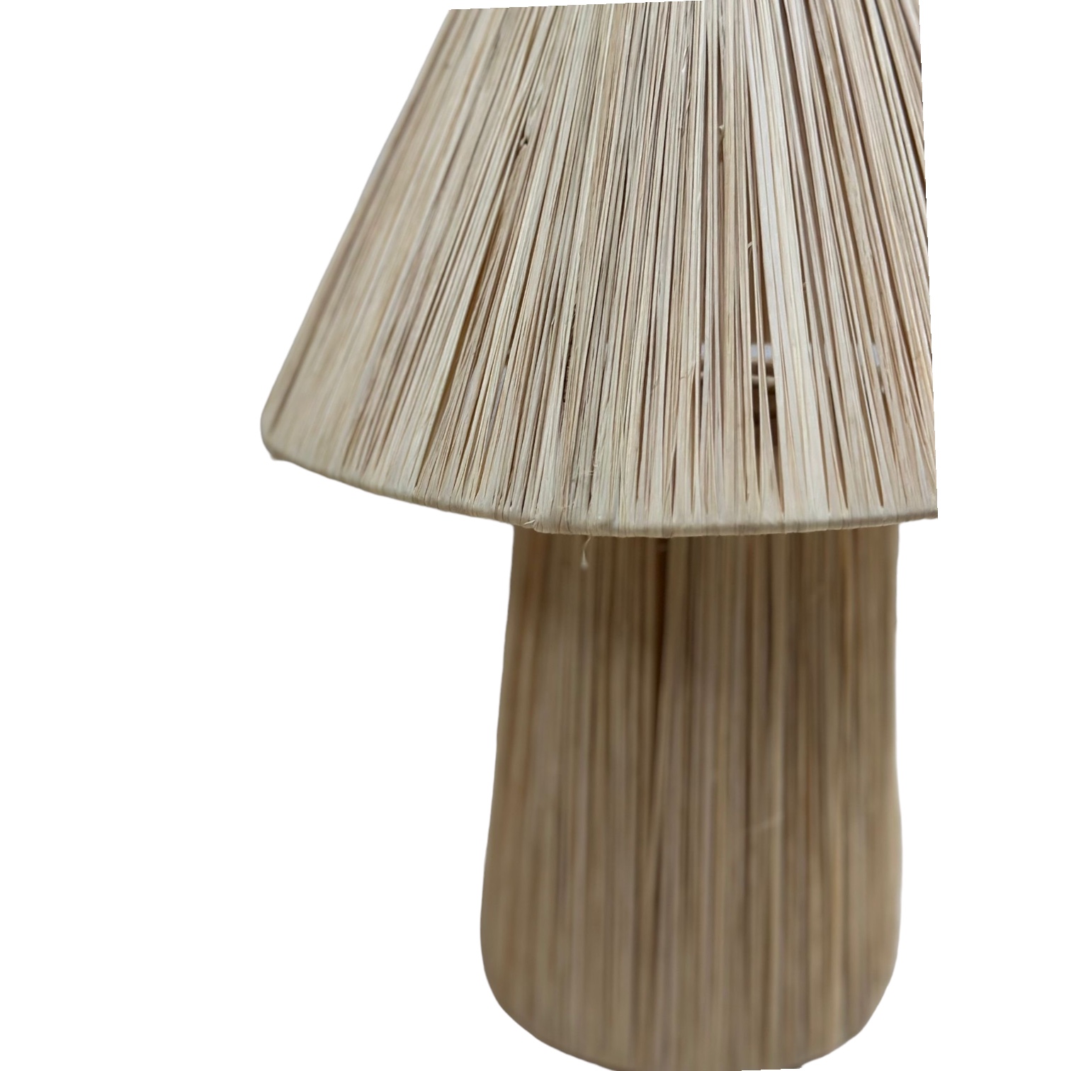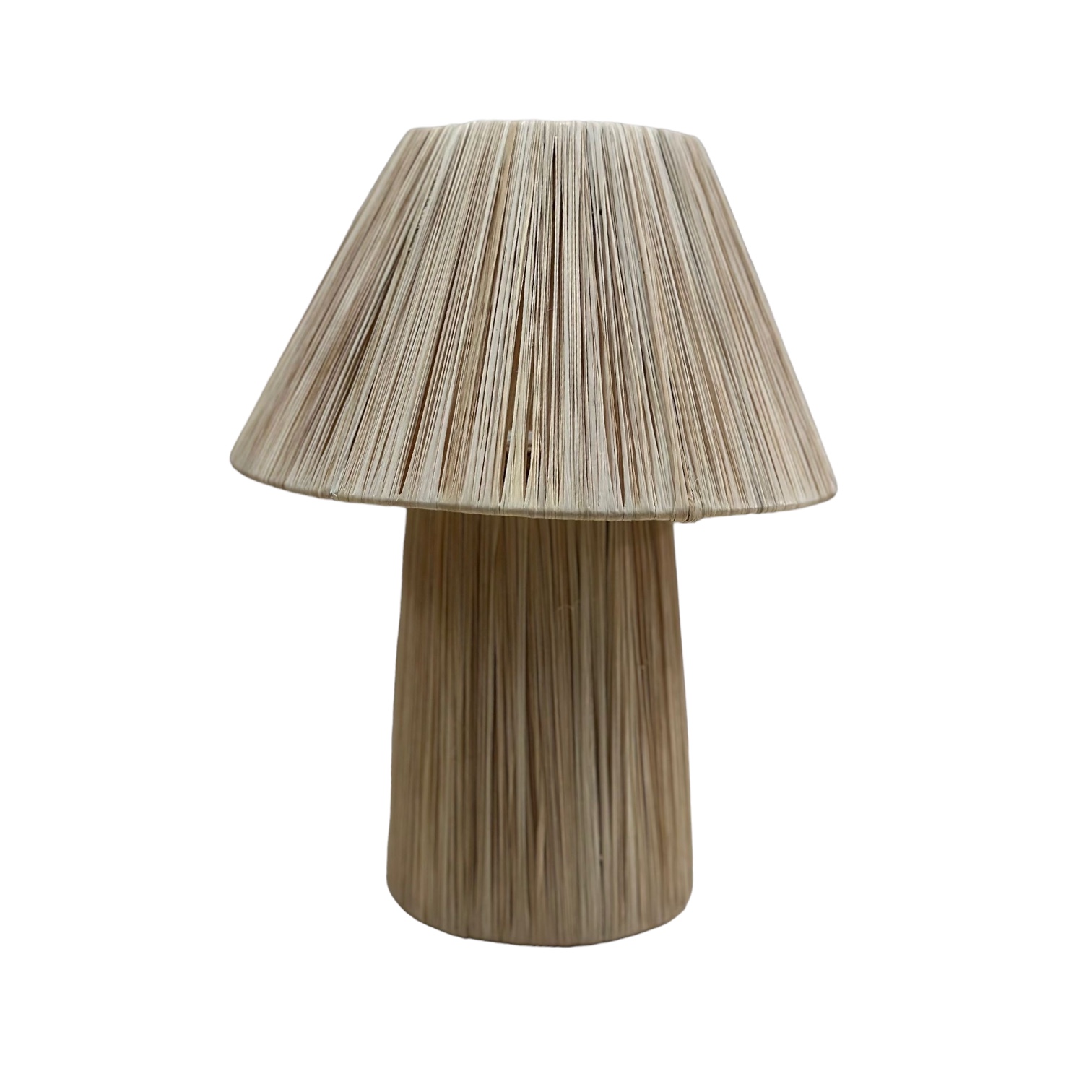Laissez-vous tenter par cette superbe lampe à poser ! C’est une lampe artisanale au design épuré et organique réalisée à partir de raphia tissé à la main sur sa structure en fer forgé. Allumée, elle diffuse une lumière chaude et tamisée. Idéale comme lampe de chevet et d’appoint dans un séjour. On apprécie le contraste entre son design minimaliste et le twist bohème du raphia.