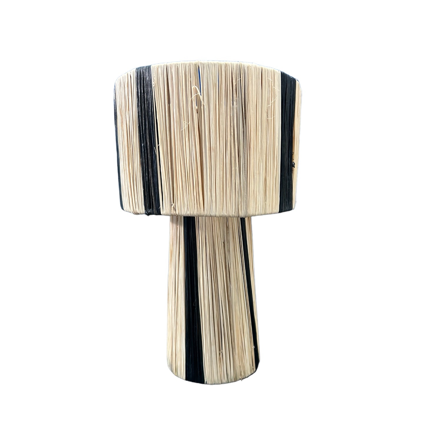 Laissez-vous tenter par cette superbe lampe à poser !  C’est une lampe artisanale au design épuré et organique réalisée à partir de raphia tissé à la main sur sa structure en fer forgé. Allumée, elle diffuse une lumière chaude et tamisée. Idéale comme lampe de chevet et d’appoint dans un séjour. On apprécie le contraste entre son design minimaliste et le twist bohème du raphia.