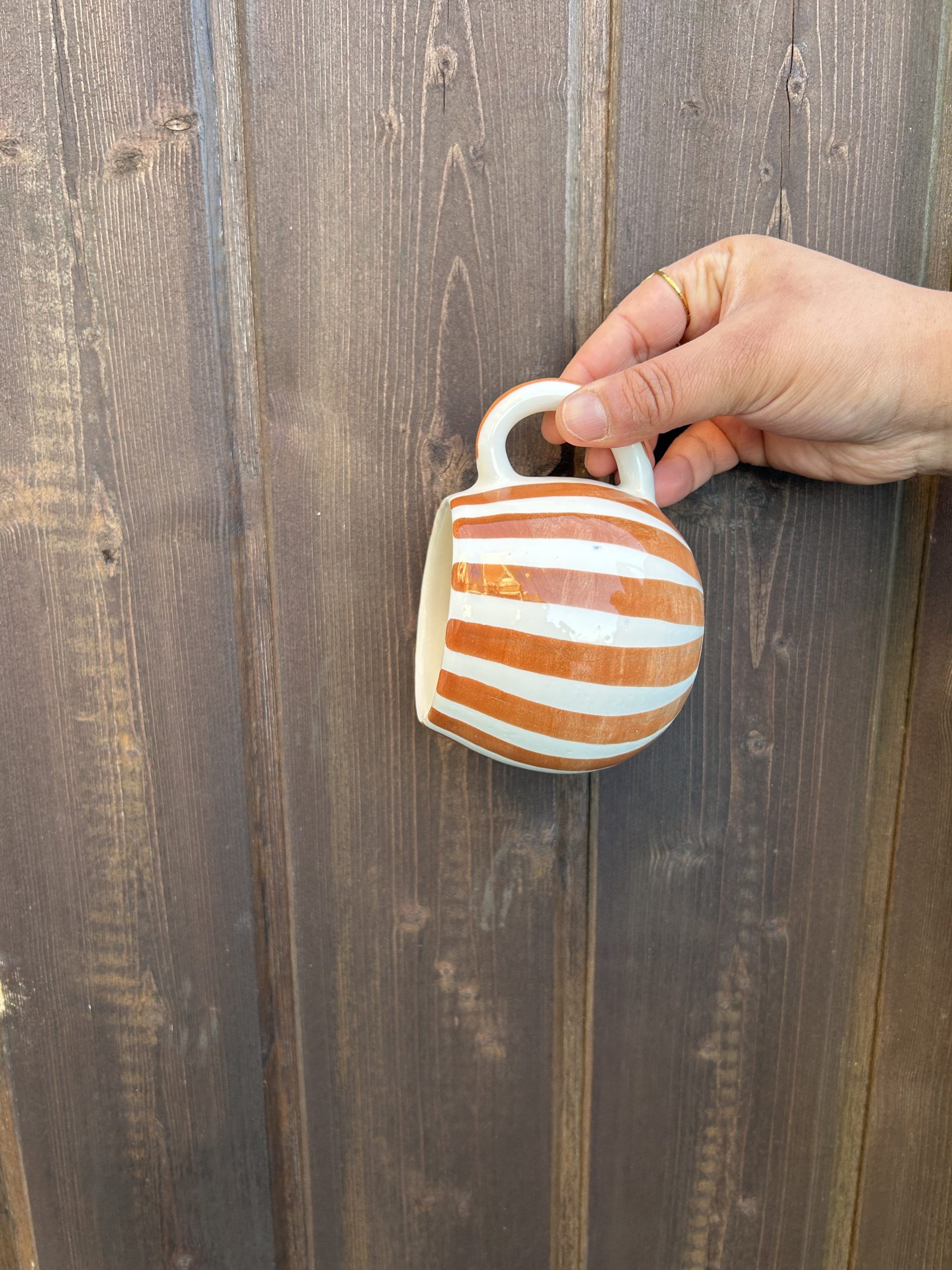 Découvrez notre magnifique mug tasse blanc rayé marron marocain artisanal, un voyage au cœur de l’art traditionnel !
