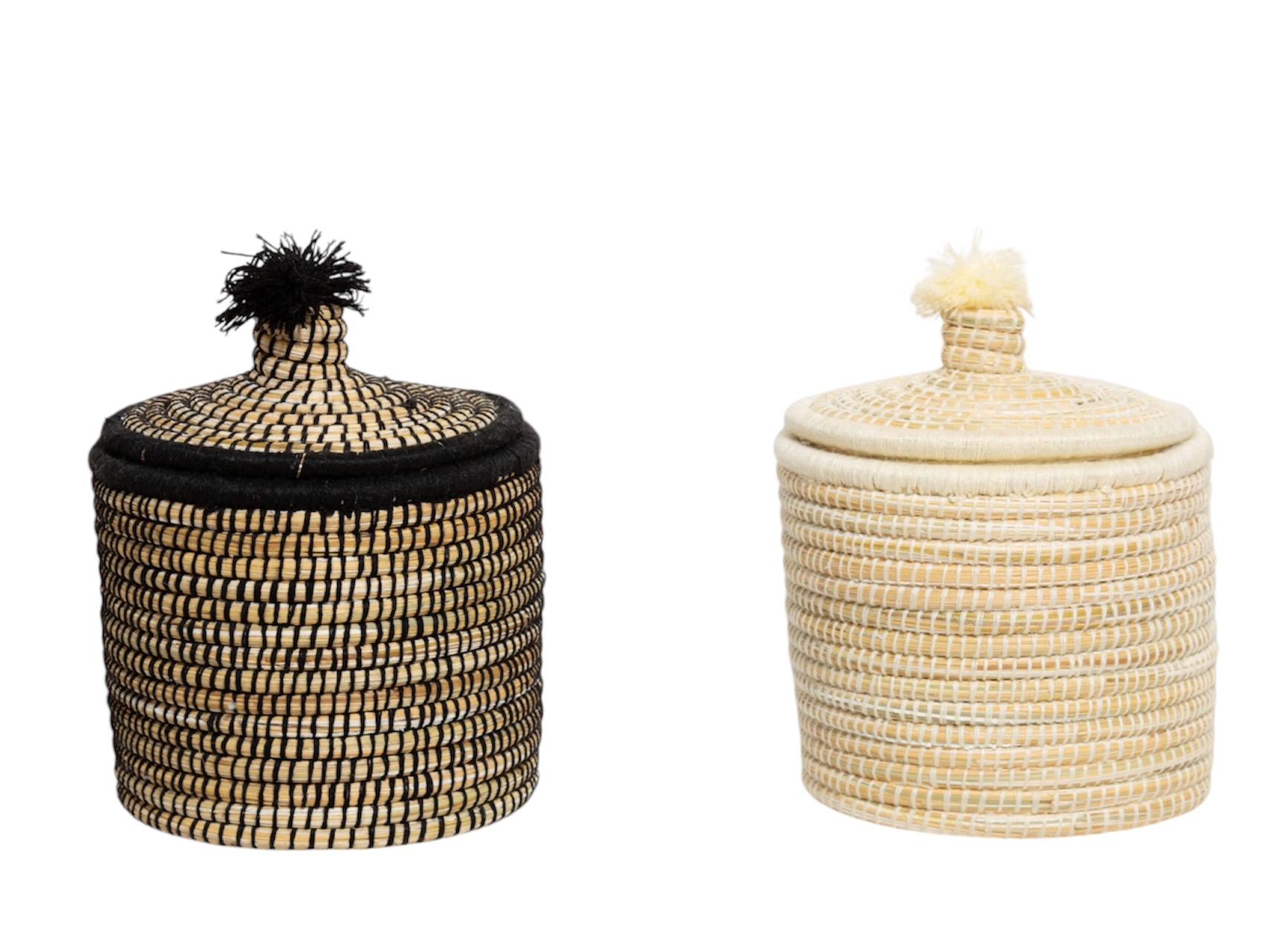 Nos petites panières au style berbère tressées main vous permettront de ranger tous vos objets du quotidien. Déclinées en boite de rangement, cache-pot, panière à pain, cette jolie corbeille en feuille de palmier et en laine est pratique et agréable à regarder.