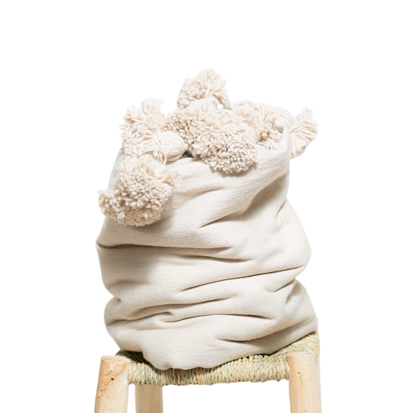 Ce plaid à pompons 100% coton est un classique. Utilisé en couvre lit ou protège canapé, il illumine vos intérieurs.