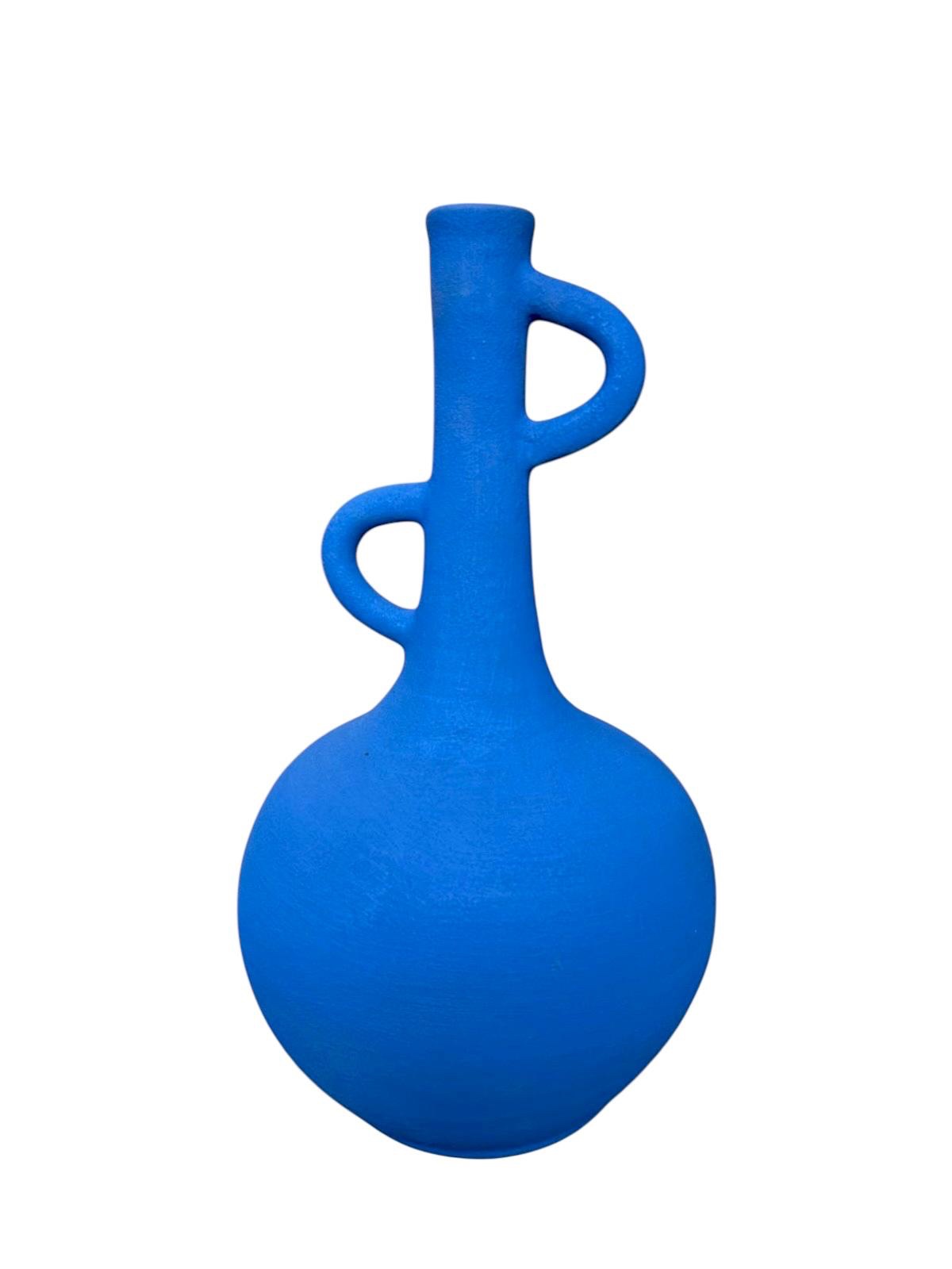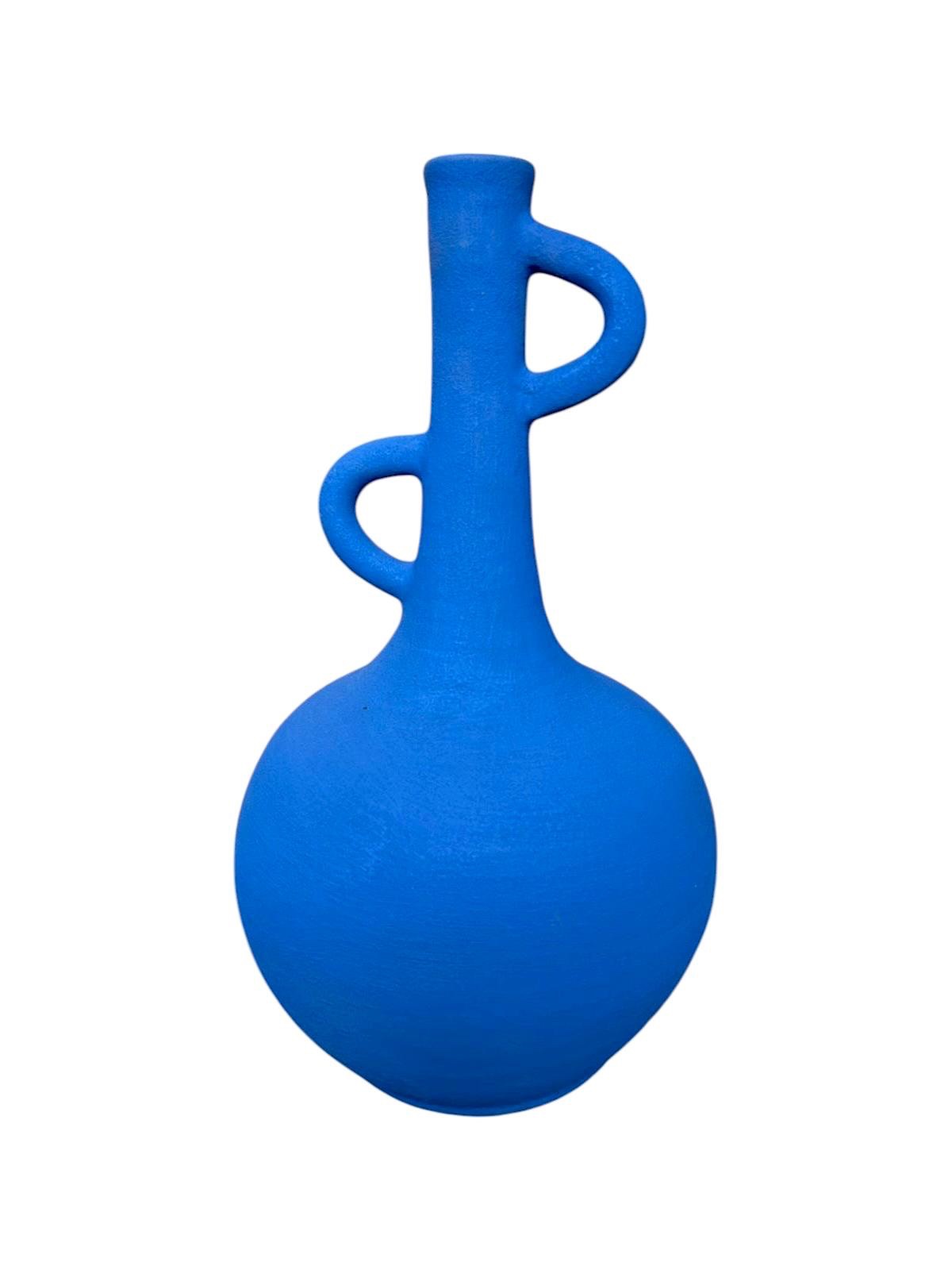 Laissez-vous séduire par notre jarre vase bouteille 2 doigts bleu majorelle, une création artisanale marocaine unique !